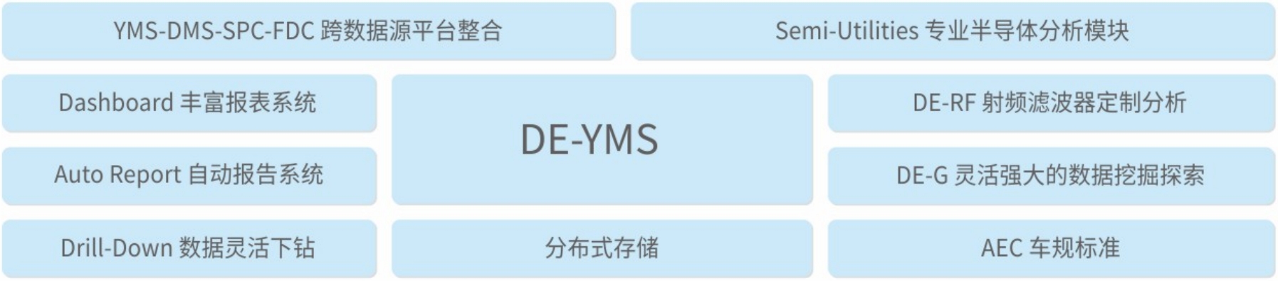 DataExp-YMS(简称: DE-YMS) 支持集成电路生产制造过程中的CP、FT、WAT、Inline、Defect、WIP等多类型数据智能化分析,为客户提供“一站式”数据分析管理平台。