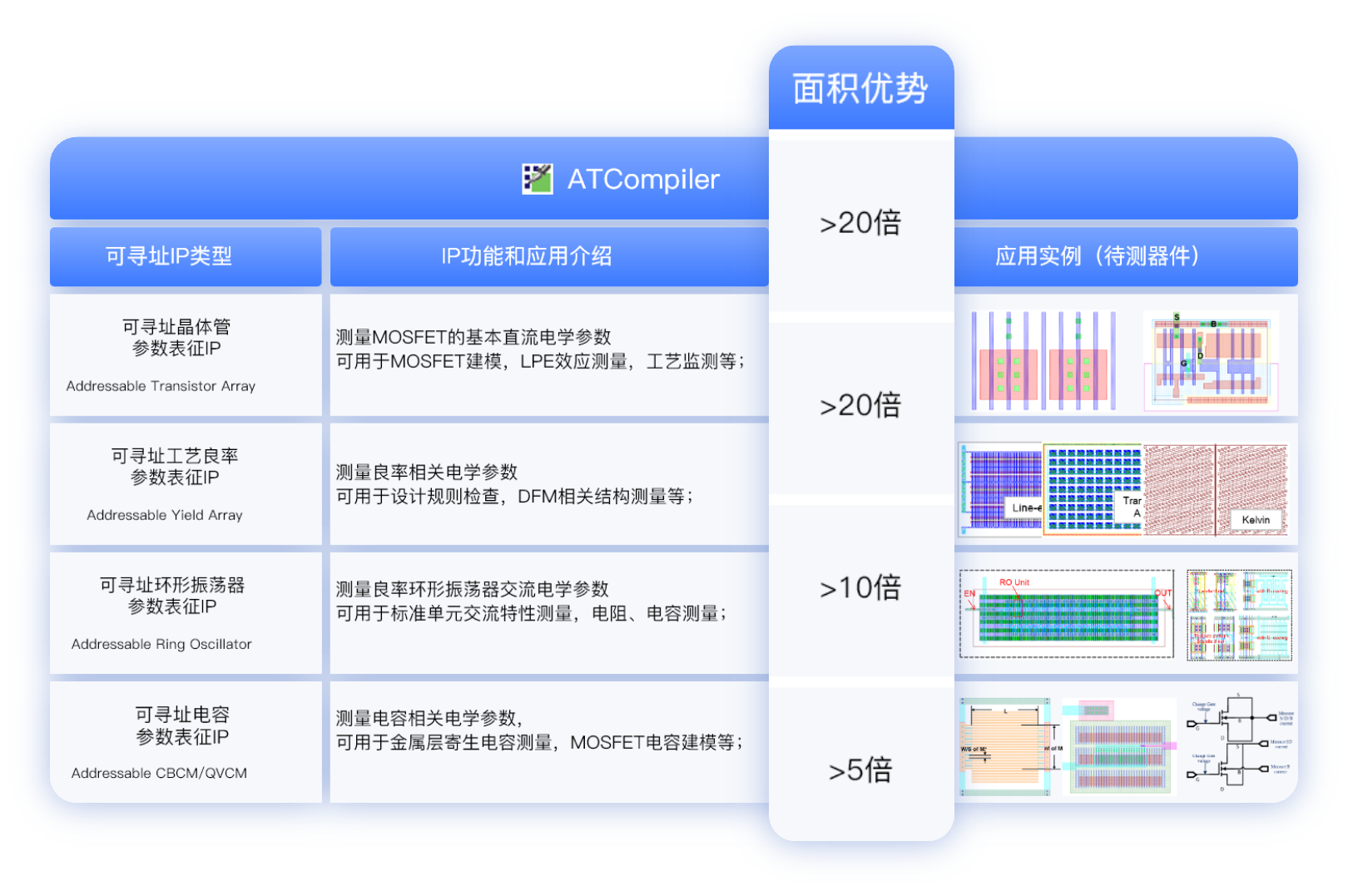 当集成电路工艺发展到纳米级工艺后,对测试样本的密度和晶圆成本面积有了更严苛的要求。传统测试芯片因占用面积大,在测量样本量和成本控制两个方面已经满足不了工艺的需求。
